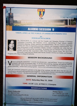 • VISION, AFRICA AND THE WORLD – AN AMERICAN’S PERSPECTIVE, Pan-African University, Lagos Business School Alumni Association, Lagos, Nigeria